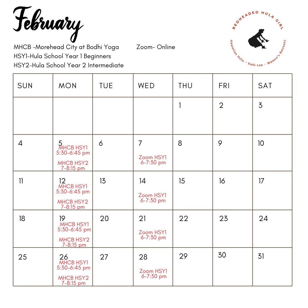 *Note time change for Wednesday Zoom classes in February.